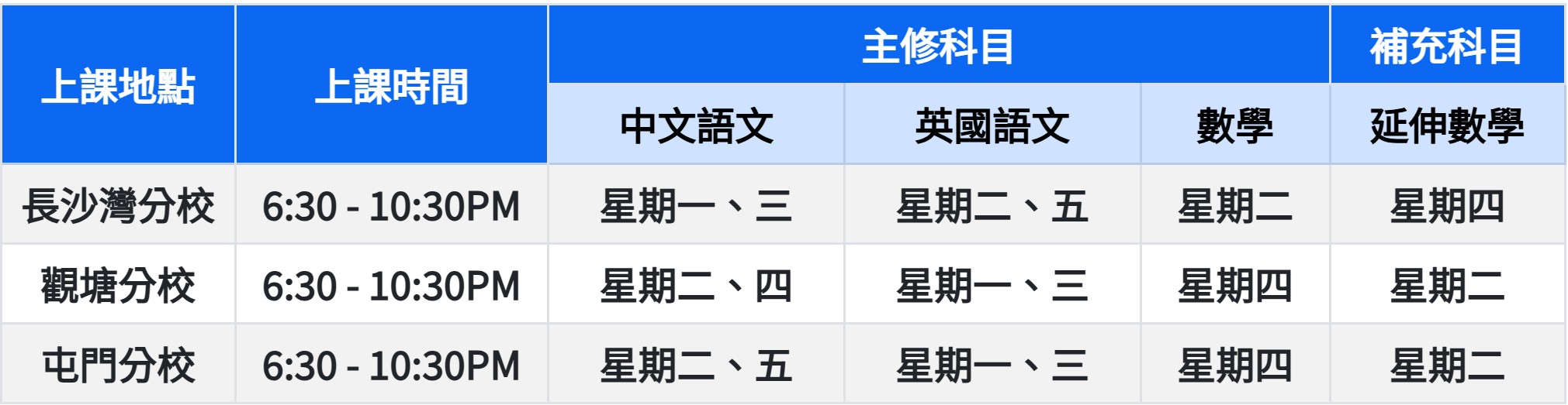 屯門分校 | 星期二 | 6:30 - 10:30PM |